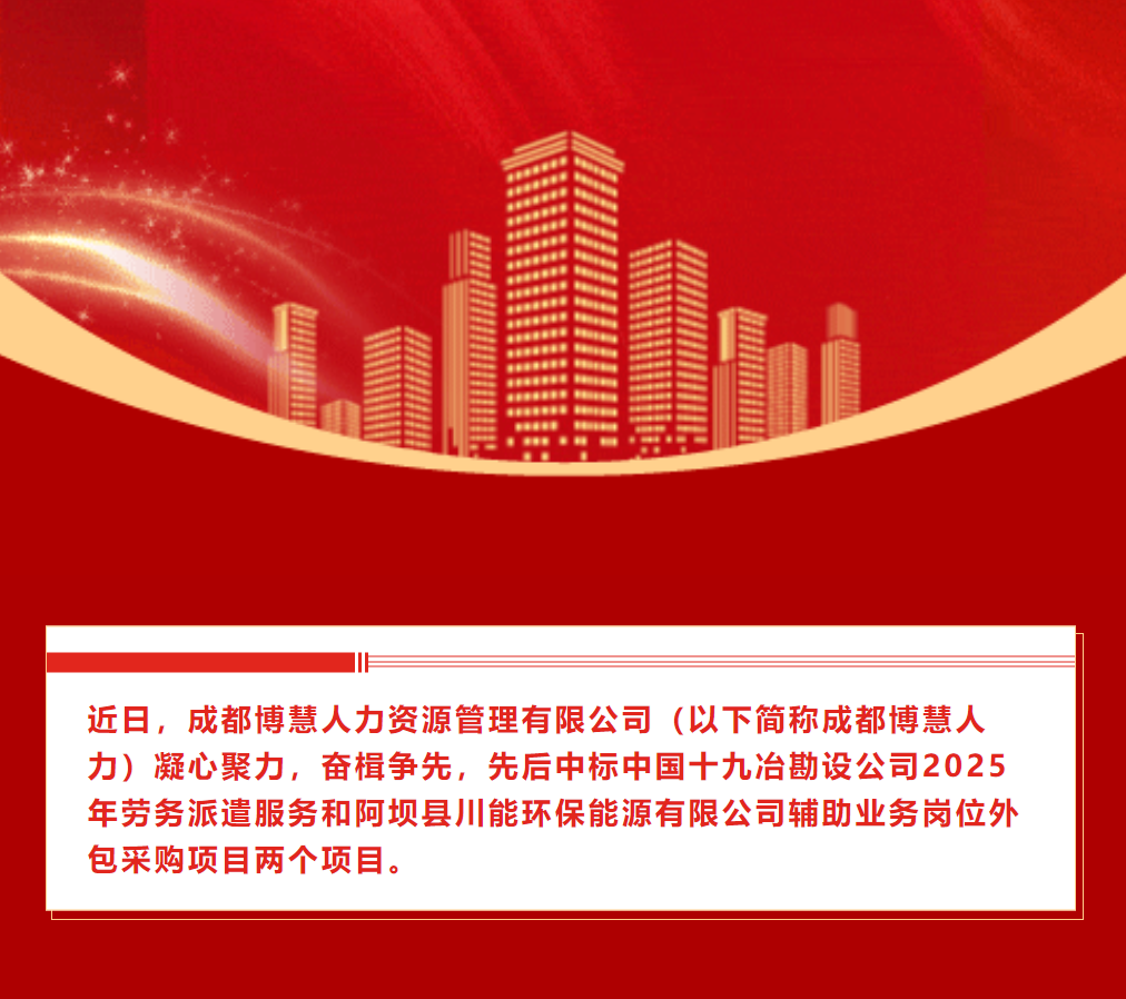 中標喜訊 | 熱烈祝賀博慧人力連續中標中國十九冶勘設公司勞務派遣服