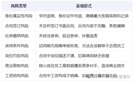 結合實務案例與司法判例,員工入職階段常見的風險主要體現在以下幾個方面: